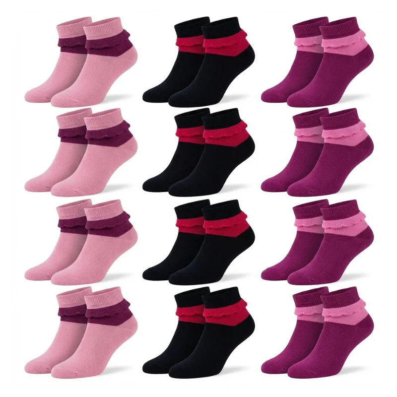 Apportez confort et style à votre quotidien avec ce lot de 12 paires de chaussettes demi-femme aux couleurs variées : noir, rose et violet. Conçues pour s’adapter à la taille standard, elles offrent une coupe confortable et un maintien optimal tout au long de la journée.