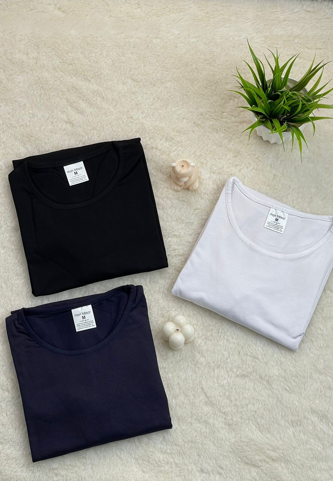 Sa coupe classique et son col rond intemporel s’adaptent facilement à toutes les silhouettes et se marient avec tous les styles. Disponible dans une large palette de couleurs — noir, blanc, rouge, bordeaux, beige, rose et bleu marine — il permet de varier les looks selon vos envies.